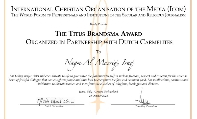 قرّرت لجنة التحكيم الدولية لجائزة تيتوس براندسما، بالإجماع، منح الجائزة المرموقة لعام 2025 (الجائزة الدولية لتعزيز الحوار) لمجلة ” نجم المشرق ” العراقية.